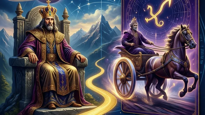 Император — это статичная, управляющая энергия Юпитера: установление законов, создание структур, отцовский авторитет, карьера. Колесница — это динамичная, завоевательная энергия: активный рост, путешествия, образование, победа в конкуренции, целеустремленность. Первый управляет уже созданным царством, вторая — завоевывает новые территории.