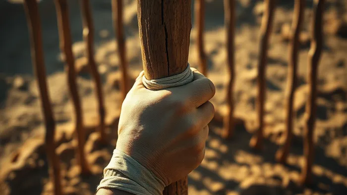 Взгляните на классическое изображение из колоды Уэйта. Мы видим фигуру с перевязанной головой, опирающуюся на жезл. Вокруг — ещё восемь жезлов, воткнутых в землю, словно частокол. Ключевых деталей здесь несколько.