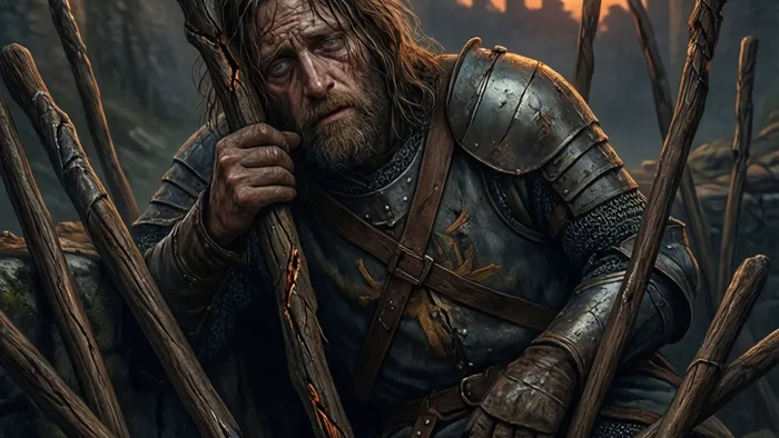 - Опора (жезл в руках) превращается в костыль. То, что раньше давало силу (принципы, упорство, режим), теперь лишь мешает, не позволяя упасть, но и не давая двигаться.