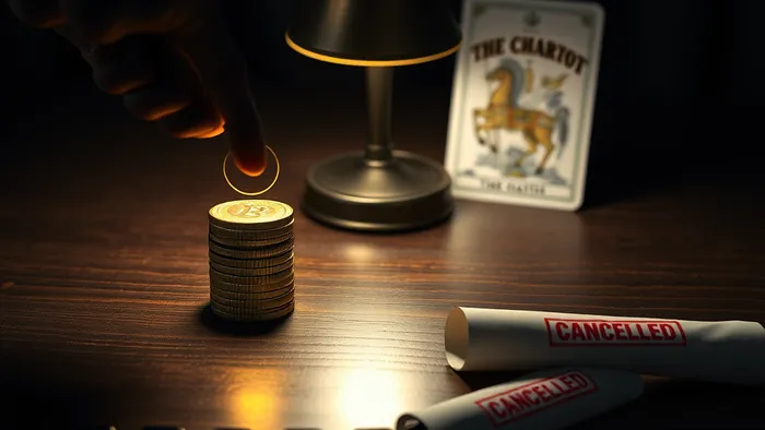 В контексте сомнительных схем стоит обратить внимание на несколько арканов. <strong>Колесница</strong> в перевёрнутом положении часто говорит об иллюзии контроля, о движении к цели любой ценой, что ведёт к аварии. <strong>7 Мечей</strong> — карта обмана, хитрости, неочевидных угроз и того, что что-то утаивается. <strong>Колесо Фортуны</strong> перевёрнутое — попытка поймать удачу за хвост, игра с судьбой. А <strong>Башня</strong> — прямое указание на внезапный крах иллюзий и стабильности.