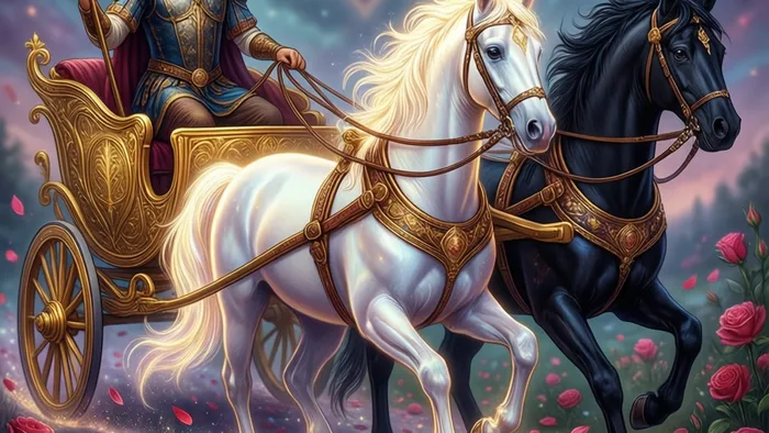 Закройте глаза. Представьте себя в колеснице. Кто ваши кони? Как они выглядят, как себя ведут? Один рвется вперед, другой упрямится? Мысленно возьмите невидимые вожжи из своего намерения. Почувствуйте, как ваша воля мягко, но уверенно направляет их, синхронизируя шаг. Куда вы едете? Какая ваша цель? Эта практика помогает осознать внутренние конфликты и обрести контроль над противоречивыми желаниями.