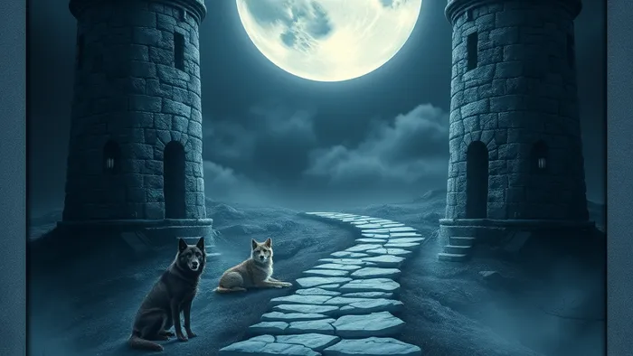 - Дорога между башнями, уходящая вдаль: путь самопознания, который требует доверия, ведь в лунном свете видно не всё.