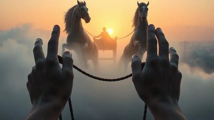 Это ключевой этап. Ваша задача — не заставить существ идти в одну сторону силой, а синхронизировать их движение через своё намерение. Сконцентрируйтесь на точке на горизонте — вашей цели. Мысленно направьте туда энергию. Почувствуйте, как ваша воля становится тем невидимым лучом, который направляет и упорядочивает. Дайте команду к движению. Почувствуйте, как колесница плавно трогается с места. Обратите внимание на ощущения: ветер в лицо, чувство власти, уверенности, цели.