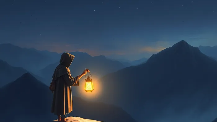 Шаг 2: Вхождение в образ. Снова закройте глаза. Представьте, что вы стоите у подножия той самой горы с карты. Вы ощущаете под ногами холодную землю или снег. Чувствуете, как плотная, грубая ткань мантии лежит на ваших плечах. В руке — тяжелый, надежный посох. А в другой руке — фонарь. Его свет мягкий, не слепящий, он освещает лишь небольшой круг перед вашими ногами.