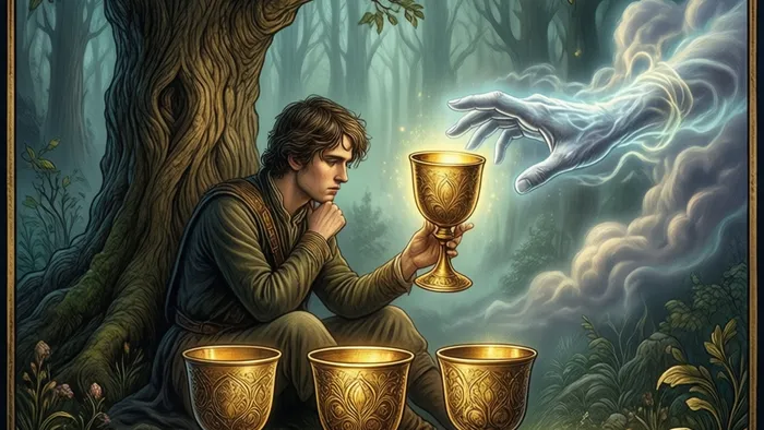 Иногда самое важное уже стоит у нас перед носом, но мы слишком заняты поиском чего-то большего, чтобы это заметить. Именно об этом парадоксе человеческого восприятия и говорит карта Четверка Кубков. Она не просто предсказывает скуку или апатию — она показывает момент, когда душа, устав от внешних поисков, замирает в ожидании внутреннего откровения.