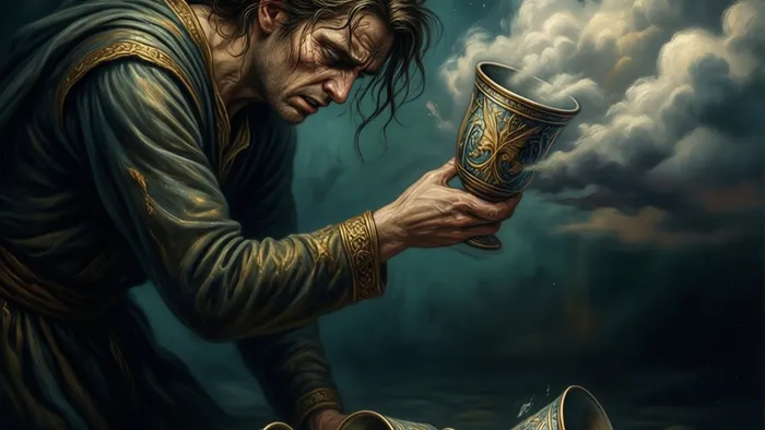 Четверка Кубков перевернутая — это архетипический символ кризиса внутреннего удовлетворения, момент, когда душа больше не соглашается на полумеры и требует перемен. Если в прямом положении карта говорит о сознательном отказе и созерцательном уединении, то перевернутая указывает на то, что период пассивности подходит к концу, часто через внутреннее давление и нарастающее беспокойство.