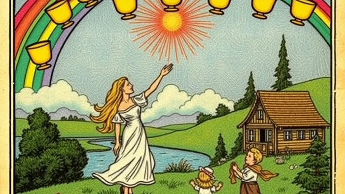 Иногда карты Таро показывают не будущее, а наши собственные, самые сокровенные ожидания от него. Десятка Кубков — это именно такой образ: семья, стоящая на берегу под радугой, дом вдали, гармония и полное эмоциональное удовлетворение. Но так ли всё просто с этой идиллией? Или эта карта, как и сама жизнь, куда многограннее?