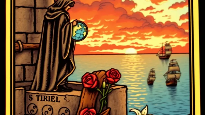 Взгляните на классическое изображение в колоде Райдера-Уэйта. Молодой человек, одетый как дворянин или купец, стоит на каменной стене замка или крепости. В правой руке он держит жезл, упирая его в землю, а в левой — ещё один жезл, на который опирается. Но самый главный символ — маленький глобус, который он держит, глядя вдаль, на морские просторы и корабли. Этот образ — концентрат смыслов.