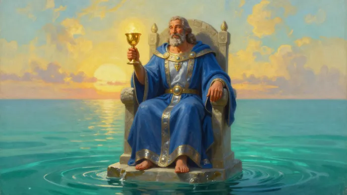 Представьте себе океан во время штиля. Поверхность кажется неподвижной, почти зеркальной, но под этой безмятежностью скрываются километры глубины и тысячи невидимых течений. Король Кубков — это и есть этот океан. В системе Таро он воплощает высшую степень эмоционального интеллекта. Это человек, который не просто чувствует, но и полностью контролирует свои реакции, превращая интуицию в инструмент власти и исцеления.