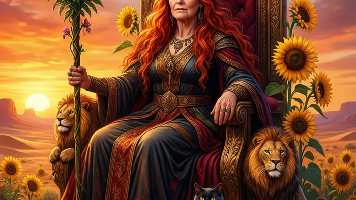 Если попытаться описать Королеву Жезлов одной фразой, то это будет «воплощенная творческая воля». В системе Таро Жезлы — масть Огня, стихии действия, вдохновения, энтузиазма и духовных поисков. Королева, как фигура придворного аркана, представляет зрелое, укорененное проявление этой энергии. Она не просто мечтает или хочет — она знает, как претворить желание в реальность. Ее трон — не каменный замок, а царство ее собственной, ни от кого не зависящей, внутренней силы.