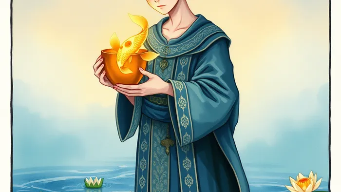 Представьте себе человека на берегу реки. Он смотрит на рыбу, выпрыгивающую из воды, но не пытается ее поймать. Он просто наблюдает, зачарованный самой красотой движения. Это и есть суть Пажа Кубков: чистое, незамутненное восприятие эмоционального мира, до всяких оценок и интерпретаций.