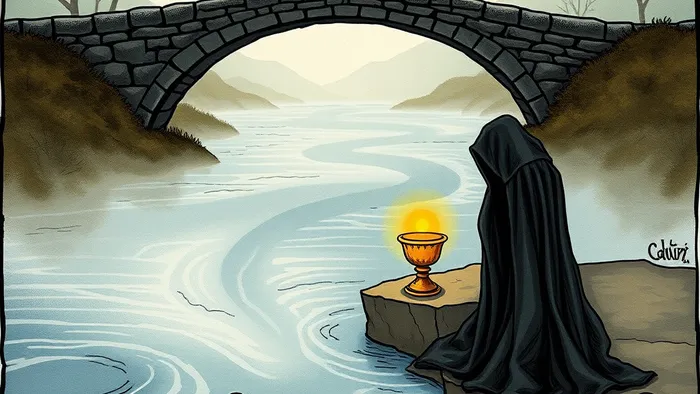 Давайте разберем детали. Черный плащ — это не только траур. Это своего рода эмоциональный кокон, изоляция, в которую человек добровольно (или вынужденно) заключает себя. Река или ручей на картинке — символ течения жизни, эмоций, которые, несмотря ни на что, продолжают двигаться. А мост на заднем плане? Он часто упускается из виду. Мост — это путь к исцелению, возможность перейти на другой берег, но для этого нужно поднять голову и сделать шаг.
