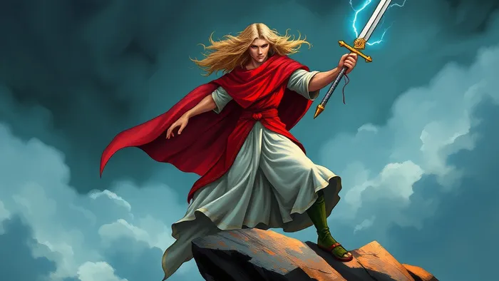 Он стоит на вершине холма, меч наготове, а взгляд его устремлён вдаль, под порывистый, переменчивый ветер. Этот образ — ключ к пониманию. Он не в гуще событий, а над ними, стараясь их обозреть, осмыслить. Его сила — в позиции наблюдателя, а оружие — слово и мысль.