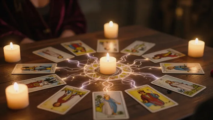 Выберите одну позицию в раскладе, которая кажется вам наиболее туманной. Положите на нее руку. Закройте глаза и попробуйте почувствовать температуру этой точки. Она холодная? Обжигающая? Пульсирующая? Часто тело дает ответ быстрее, чем логический ум подберет значение из справочника. Это простой, но эффективный способ углубить свою связь с полем.