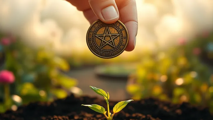 - Получение дара: Представьте, что из-за облаков к вам протягивается рука. В ладони — ваш личный «Туз Пентаклей» — это может быть монета, семя, инструмент, ключ. Примите его. Почувствуйте его текстуру, вес, температуру.