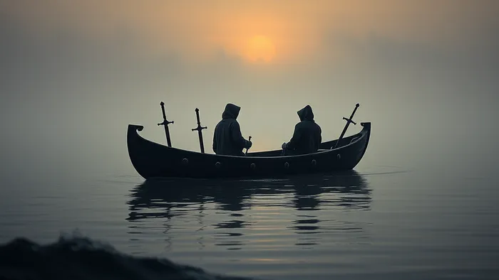 Мечи: Шесть мечей воткнуты в борта лодки. Это ваши мысли, проблемы, травмы прошлого. Вы забираете их с собой. Они не исчезли, но теперь они обездвижены, «пришпилены» к текущей реальности. Они больше не размахиваются в бою, а просто являются частью багажа.