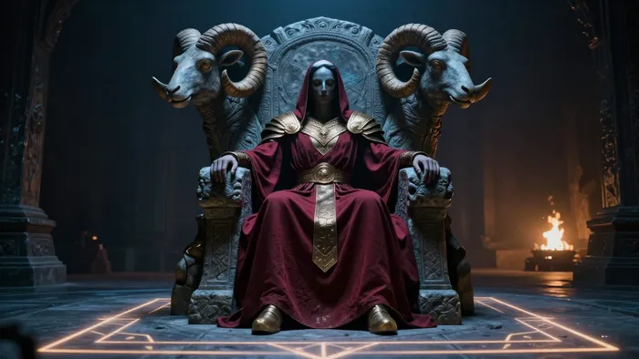 - Визуальная настройка. Положите карту перед собой. Смотрите на фигуру правителя. Обратите внимание на его доспехи под красными одеждами. Он всегда готов к защите, даже когда отдыхает. Его трон украшен головами овнов — символ упрямства и воли.