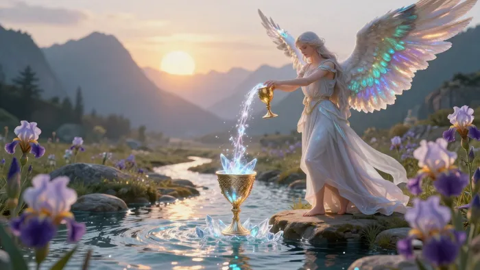 Кстати, ирисы часто связывают с богиней Иридой, вестницей богов, которая спускалась по радуге. Радуга — это тоже символ Умеренности. Это спектр, где каждый цвет имеет свое место. В нашей психике точно так же: нет лишних эмоций, есть только неправильная дозировка.