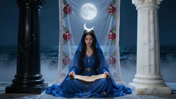 Перед ней сидела Жрица. Она не была ни старой, ни молодой. У ее ног лежал серебряный серп луны, а за ее спиной возвышались две колонны: Боаз и Яхин — Тьма и Свет. Элара хотела спросить: «Что мне делать дальше?», но голос пропал. Жрица протянула ей свиток. Он был пуст. Или, точнее, на нем были написаны слова, которые проявлялись только тогда, когда Элара переставала пытаться их прочесть.