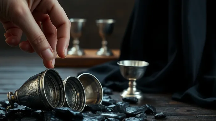 - Проживание потери: Представьте себя на месте фигуры. Увидьте три опрокинутых кубка перед собой. Почувствуйте тяжесть плаща на плечах, вкус слёз. Позвольте этим чувствам быть. Не гоните их. Скажите про себя: «Да, это больно. Я признаю эту боль».