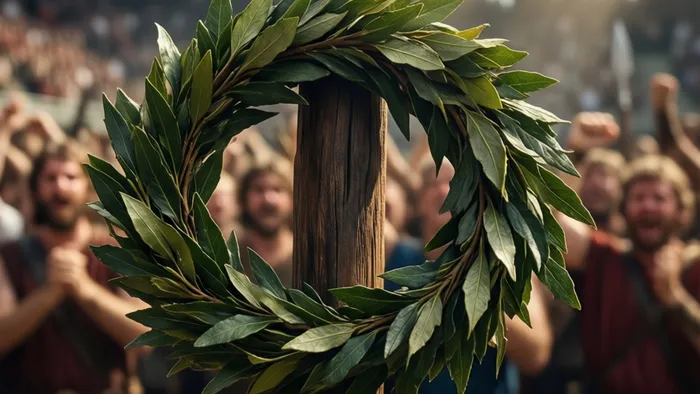 - Лавровый венок: Классический атрибут победителя, слава, почет.