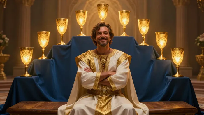 Представьте себе момент сразу после роскошного ужина в кругу друзей, когда последний бокал вина еще не допит, а в воздухе витает аромат дорогого табака и искреннего смеха. Вы откидываетесь на спинку кресла, чувствуя приятную тяжесть в теле и абсолютное, почти звенящее спокойствие в голове. В этот миг вам ничего не нужно от мира — вы уже взяли свое. Именно в этом состоянии «сытого довольства» живет Девятка Кубков.