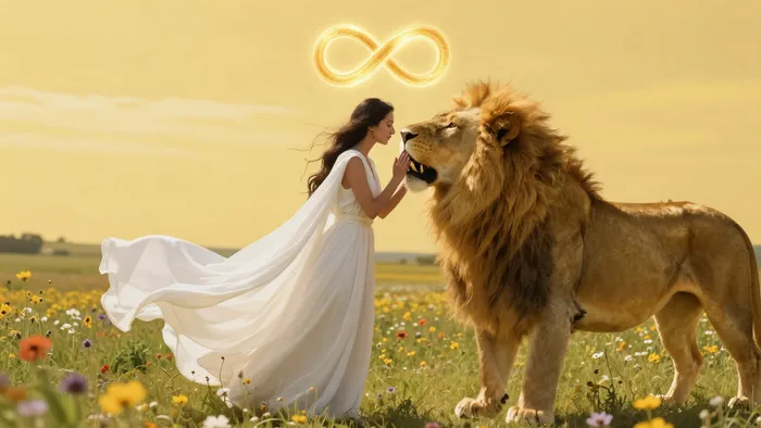 Белое платье женщины символизирует чистоту намерений. На ней гирлянды из цветов. Это не просто украшение. Это символ того, что природа подчиняется ей добровольно. Лев — это наше Эго, наши страсти, наш гнев и даже наши базовые желания выжить любой ценой. Сила не убивает льва. Она его приручает. Хотя, если честно, слово «приручение» мне не очень нравится. Оно звучит слишком авторитарно. Скорее, это процесс интеграции. Мы признаем, что в нас живет зверь, и вместо того, чтобы запирать его в клетке подсознания, мы предлагаем ему сотрудничество.