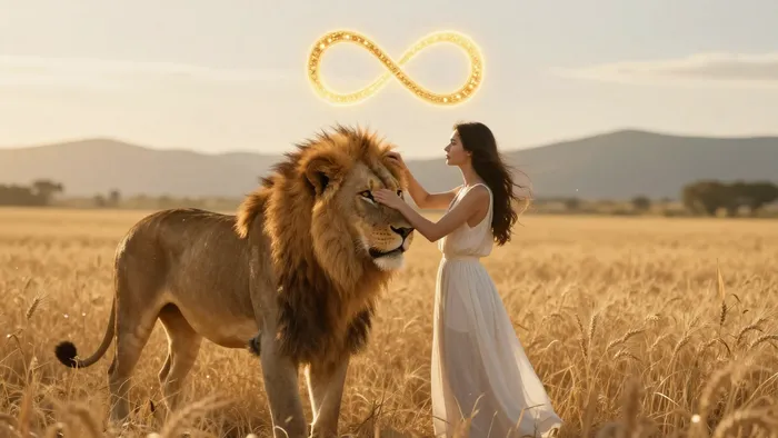 Представьте себе женщину, которая голыми руками закрывает пасть огромному льву. Она не выглядит напряженной. На ее лице нет страха или ярости. На ней белое платье — символ чистоты помыслов, а над головой сияет лемниската, знак бесконечности. Это не цирковой трюк. Это глубочайшая метафора того, как сознание взаимодействует с подсознательными импульсами. Лев здесь — это наше «Оно», наши базовые инстинкты: гнев, похоть, эгоизм, страх. И женщина не убивает его. Она его приручает.