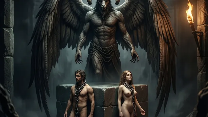 - Поза фигур: Они часто изображены с хвостами, которые свободно переходят в факел Дьявола. Их природа изменена, они «приняли» свою несвободу как данность.