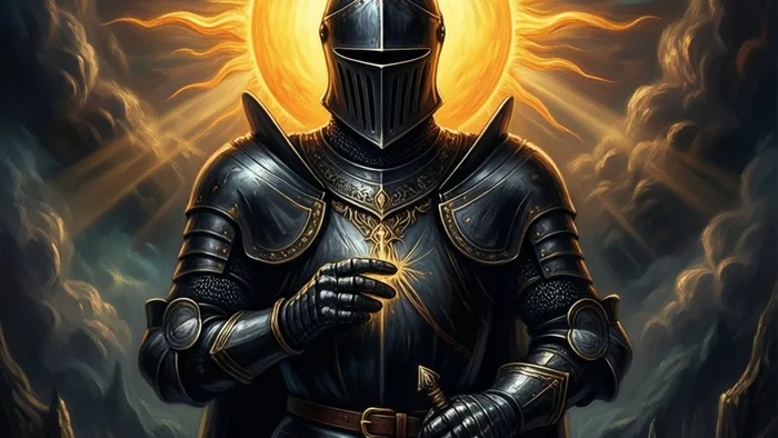 Всадник в чёрных латах — это не злодей, а безличная сила перемен, подобная смене сезонов. Чёрный — цвет небытия, пустоты, из которой возникает всё новое. Белая роза на его знамени — символ чистоты, обновления и бессмертия души. Сочетание говорит: разрушение служит жизни.
