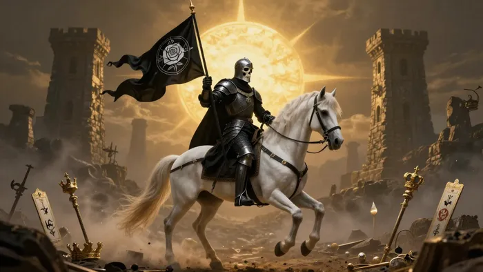 В традиционной иконографии Уэйта Смерть предстает в виде рыцаря на белом коне. Это важно. Белый цвет коня — символ чистоты намерений судьбы. Смерть здесь не злодей, а ассенизатор вселенной. Она приходит не для того, чтобы мучить, а для того, чтобы очистить пространство от гнили. В руках у неё черное знамя с мистической розой, символизирующей жизнь, которая вечно возрождается из распада.