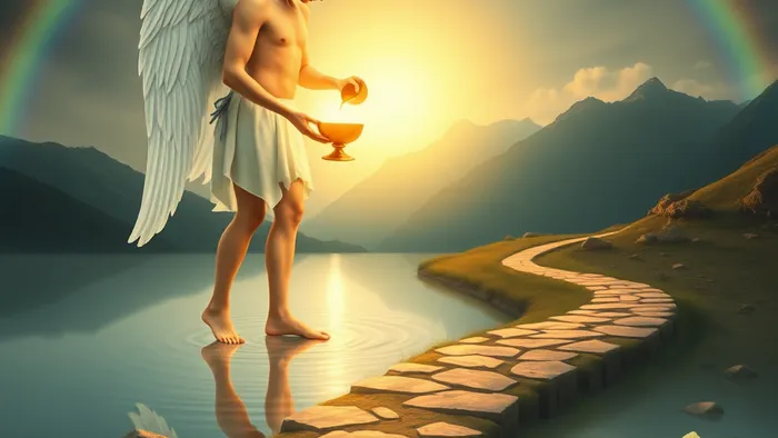 Ангел (часто — архангел Михаил) стоит одной ногой в воде, другой — на суше. Это мост между сознательным и бессознательным, между эмоциями и практичностью. В его руках — два кубка, и он переливает жидкость из одного в другой. Вот он, ключевой жест: не статичное удержание, а динамичный, ритмичный обмен. Вода течет не просто так — она циркулирует.