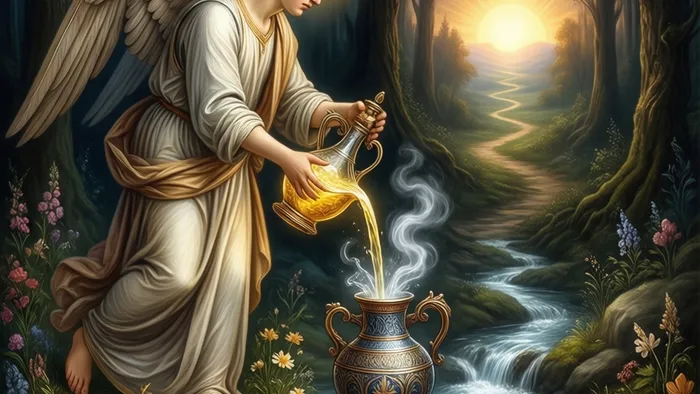 С точки зрения мистических традиций, Умеренность — это мост между мирами. Два сосуда символизируют дуальность нашего бытия: дух и плоть, мужское и женское, Солнце и Луну. Ангел, часто изображаемый с солнечным символом на лбу, выступает как проводник божественной энергии в материальный мир. Процесс переливания — это нисхождение духа в материю и, одновременно, возвышение материи до уровня духа. Это карта трансмутации.