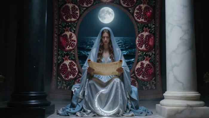 За спиной Жрицы висит завеса, украшенная гранатами. В эзотерической традиции гранат символизирует плодородие и множественность смыслов. Однако завеса закрывает от нас воду — океан подсознания. Жрица — страж этого порога. Она не пустит вас в глубины, пока вы не научитесь молчать. Это состояние созерцания тесно связано с природными циклами, о чем мы подробно говорили в материале Лунный прилив: Тайная связь знака Рака, арканов Таро и магических камней.