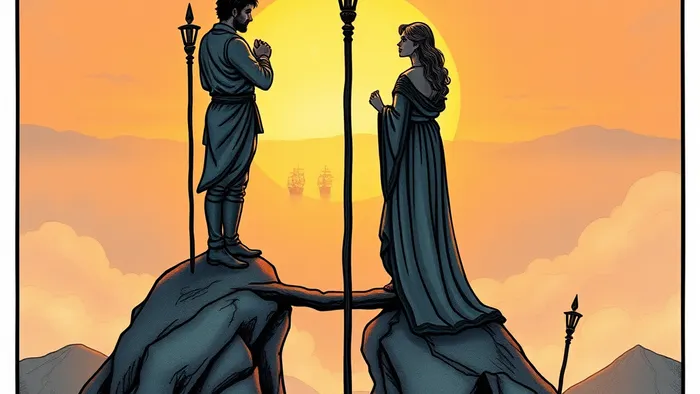 Представьте человека, который поднялся на холм. Он оглядывает горизонт, опираясь на посох. Позади — проделанный путь, впереди — открывшиеся возможности. Но его взгляд уже не на далёких кораблях, а на тропинке, ведущей к ногам. Именно так Тройка Жезлов входит в мир отношений: как момент, когда внутренняя уверенность ищет точку приложения в реальном, живом человеке.
