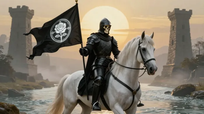 - Черное знамя с мистической розой: Символ жизни, которая скрыта в самом сердце распада.